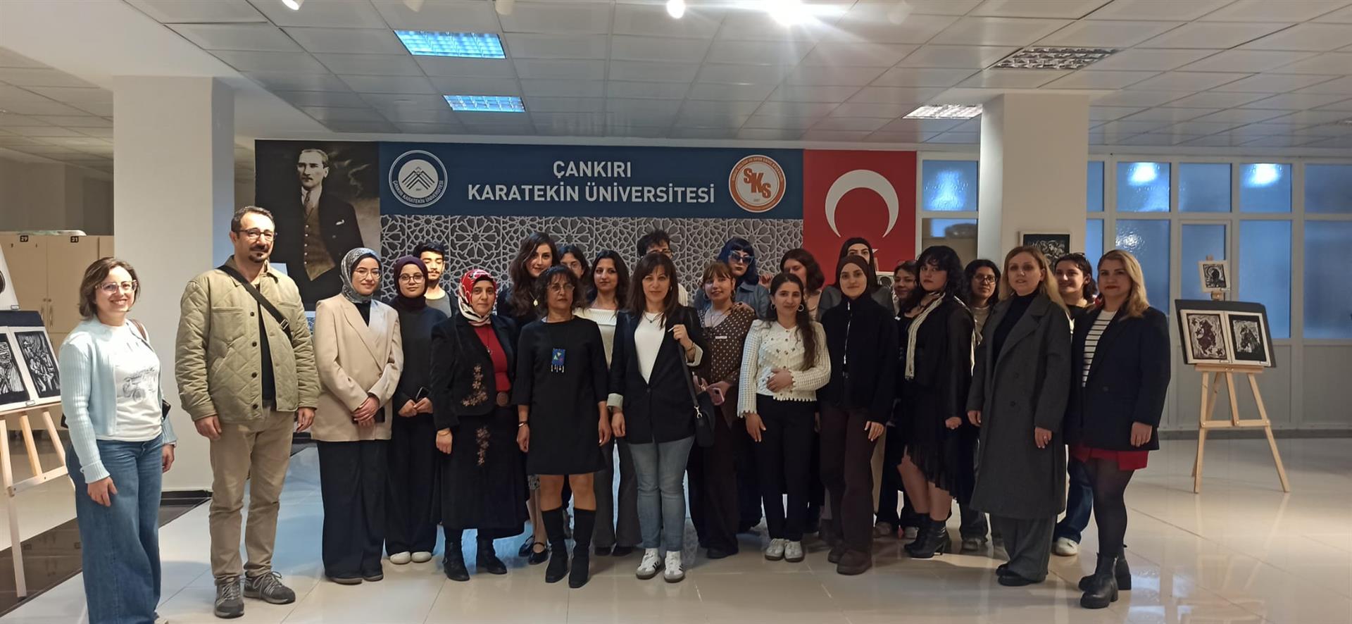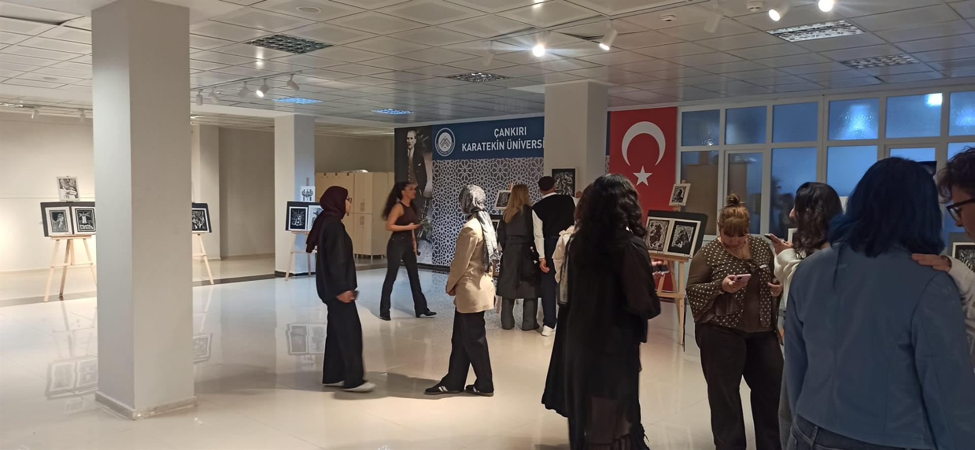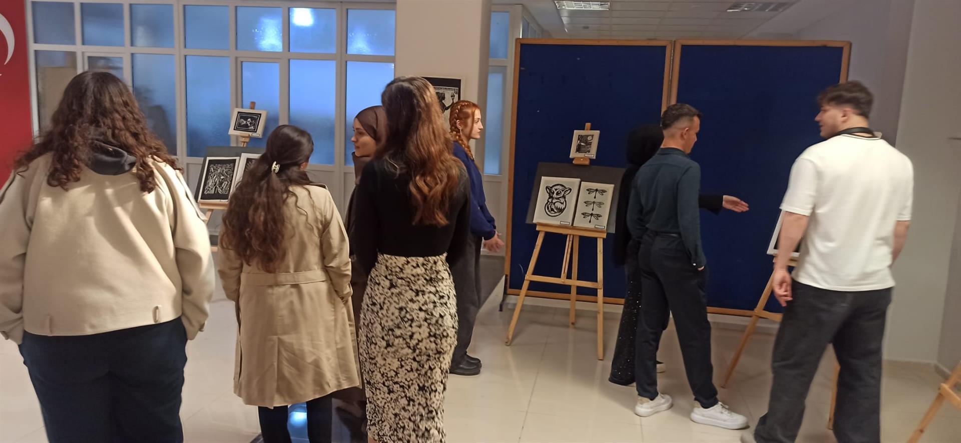 Üniversitemiz Sanat, Tasarım ve Mimarlık Fakültesi Tekstil ve Moda Tasarımı Bölümü tarafından, Dr. Öğretim Üyesi Emine Ketencioğlu koordinatörlüğünde yürütülen Tekstilde Boya ve Baskı Teknikleri I dersi kapsamında hazırlanan strafor ve linol baskı ürünlerinden oluşan sergi, 02 Nisan 2026 tarihinde saat 14.00’te Üniversitemiz Sağlık Kültür ve Spor Daire Başkanlığı fuaye alanında açılmıştır.